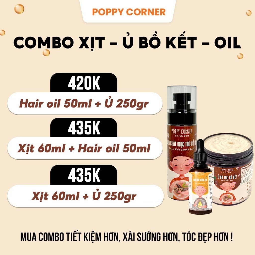 Xịt Bồ Kết kích mọc tóc nuôi nang tóc tinh dầu dưỡng tóc giảm rụng tóc dày dài khỏe nhanh thơm thảo dược Poppy Corner