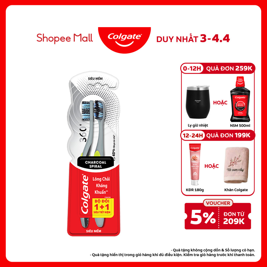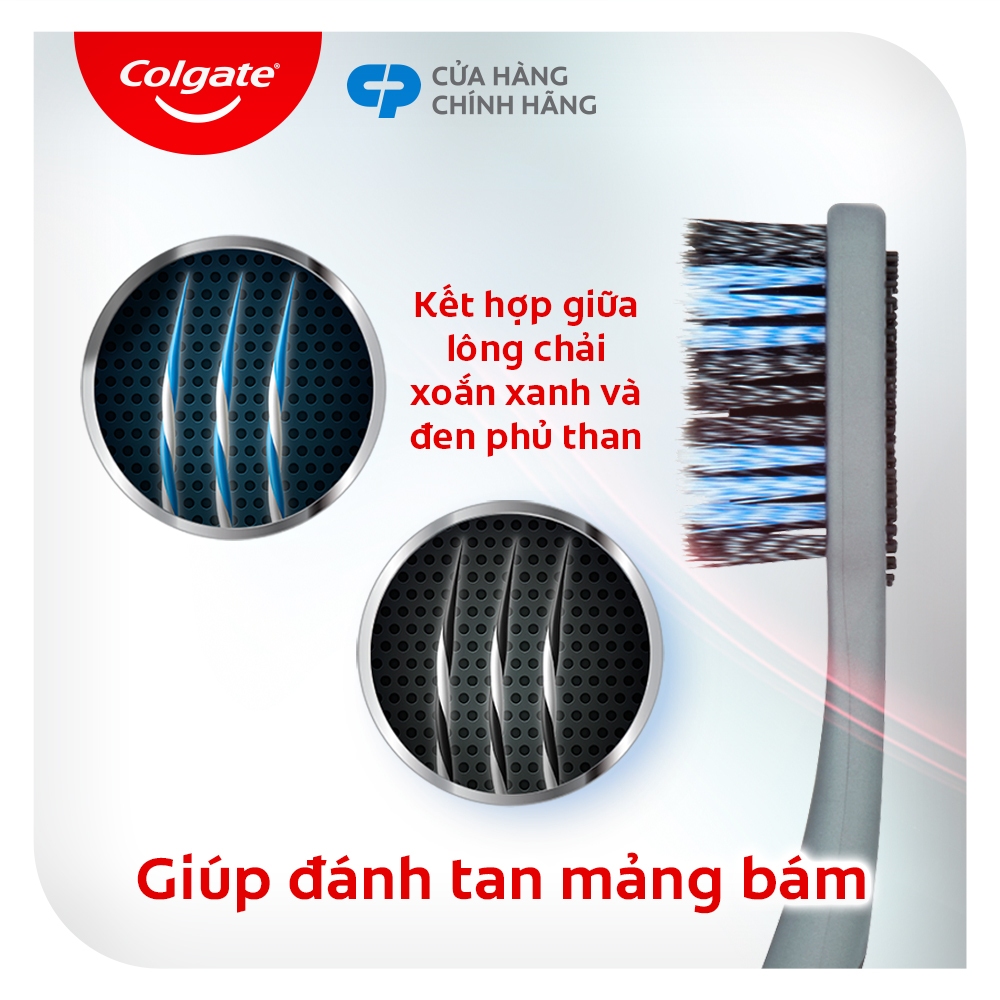 Bộ 2 Bàn chải Colgate 360 độ than hoạt tính & lông chải xoắn kép làm sạch mảng bám hiệu quả