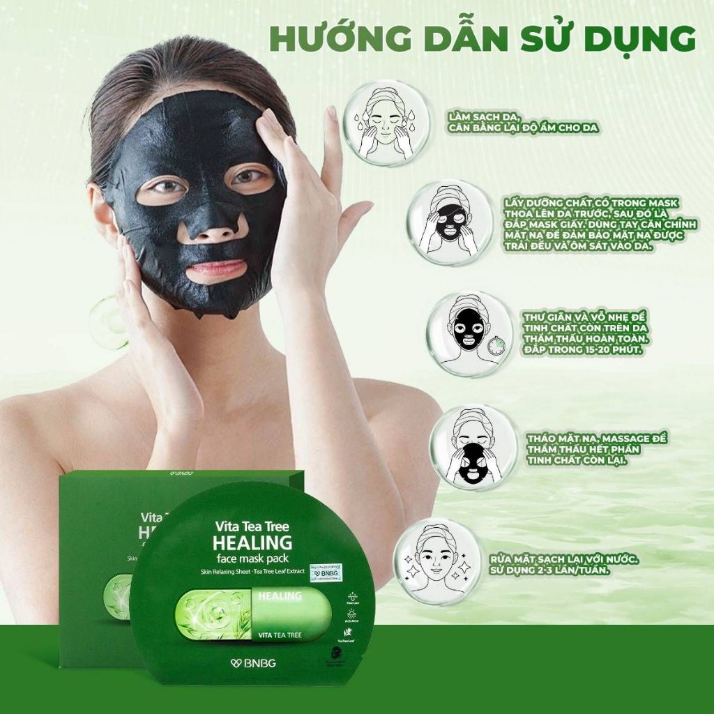 Mặt Nạ Tràm Trà Hỗ Trợ Thải Độc Da Giảm Mụn Vita Tea Tree Healing Face Mask Pack BNBG 30ml