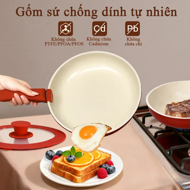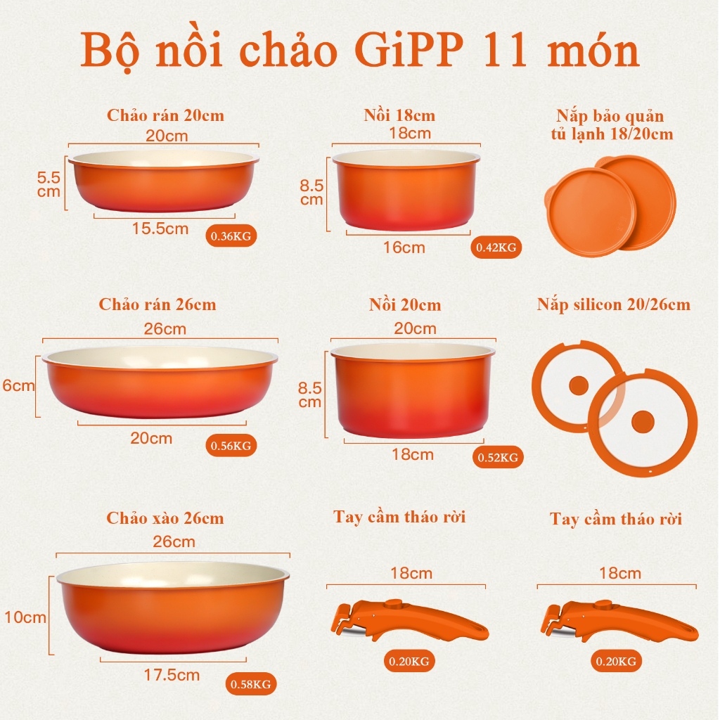 GiPP Bộ nồi đá gốm chống dính tay cầm tháo rời 11/5 chiếc không chứa PFAS PTFE PFOA thích hợp cho mọi loại bếp
