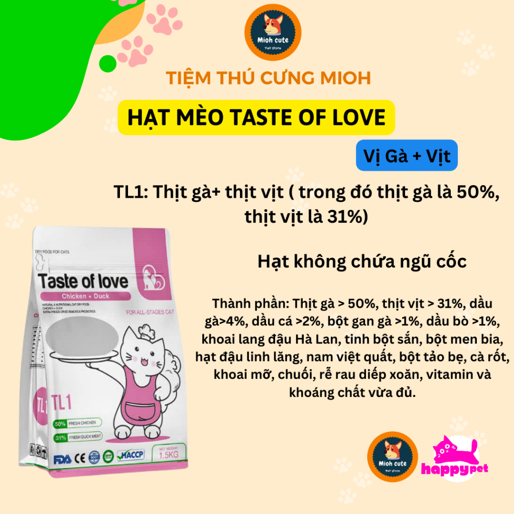 Hạt mèo Taste of Love Mix Topping cao cấp 1,5KG