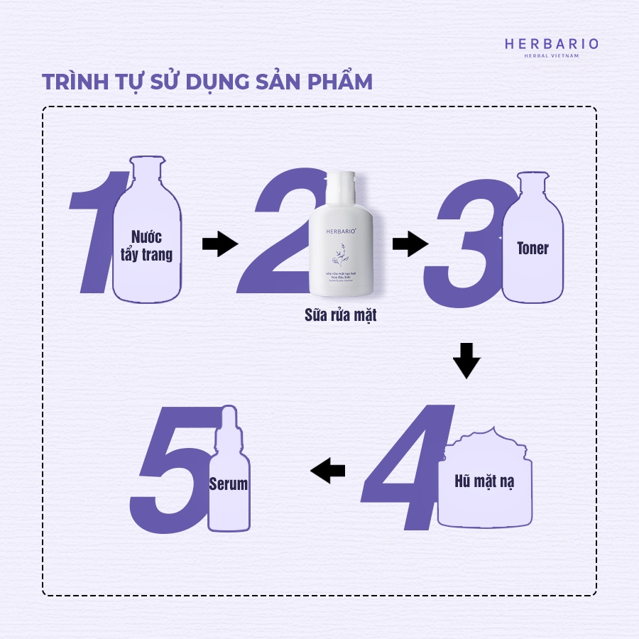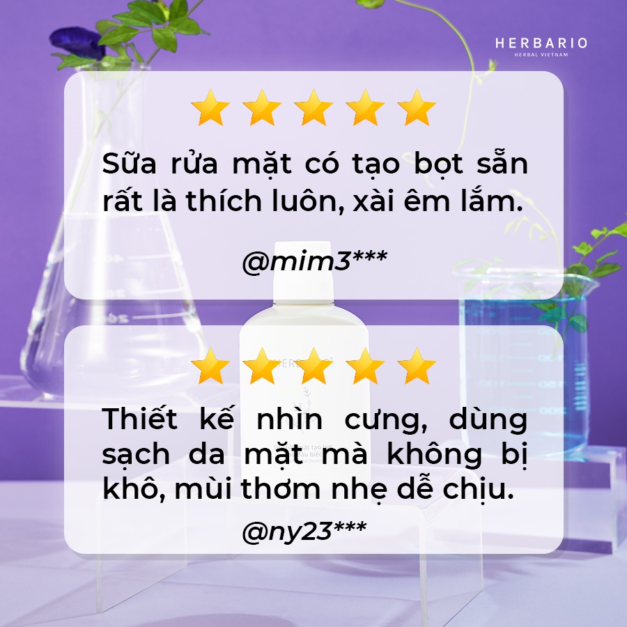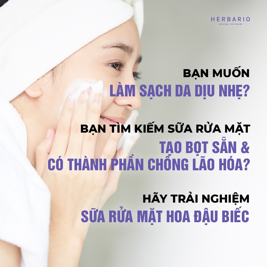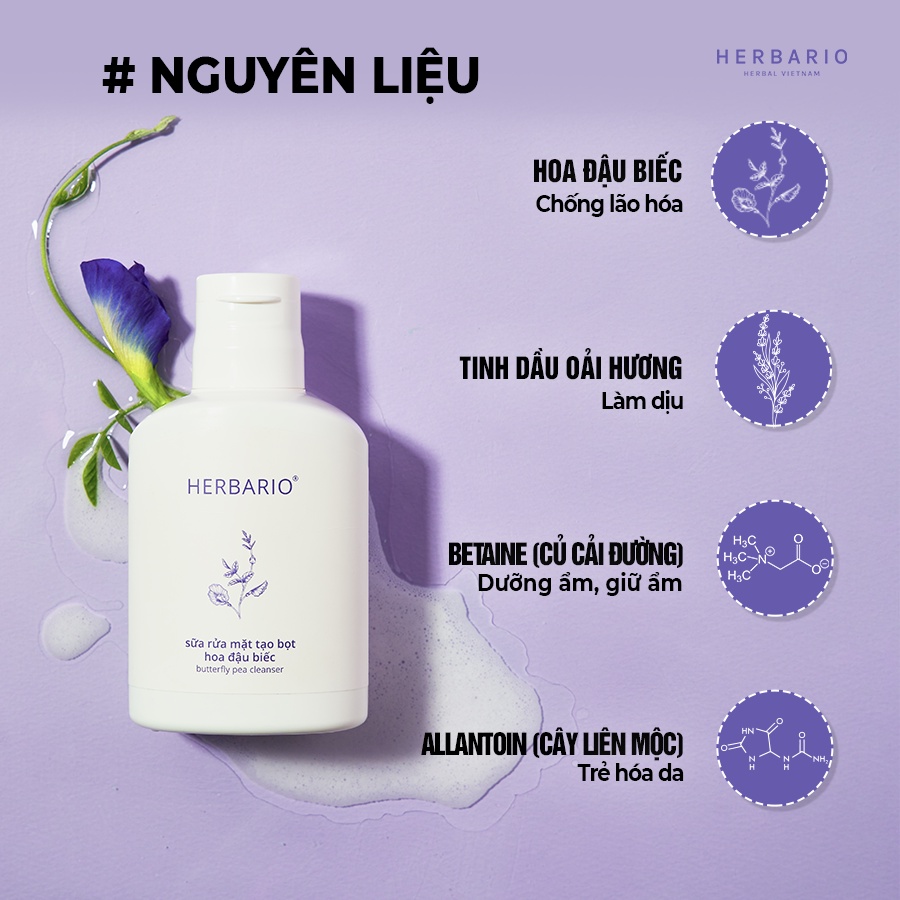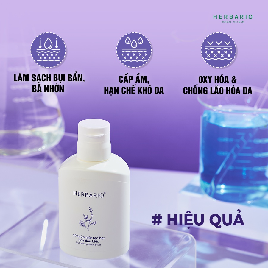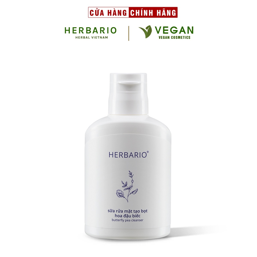 Sữa rửa mặt tạo bọt hoa đậu biếc herbario 100ml thuần chay cấp ẩm, chống lão hóa