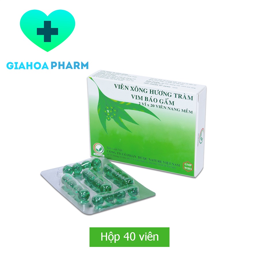 Viên xông tinh dầu Hương Tràm Vim Báo Gấm - Hộp 40 viên - Xông cảm, sát trùng mũi họng