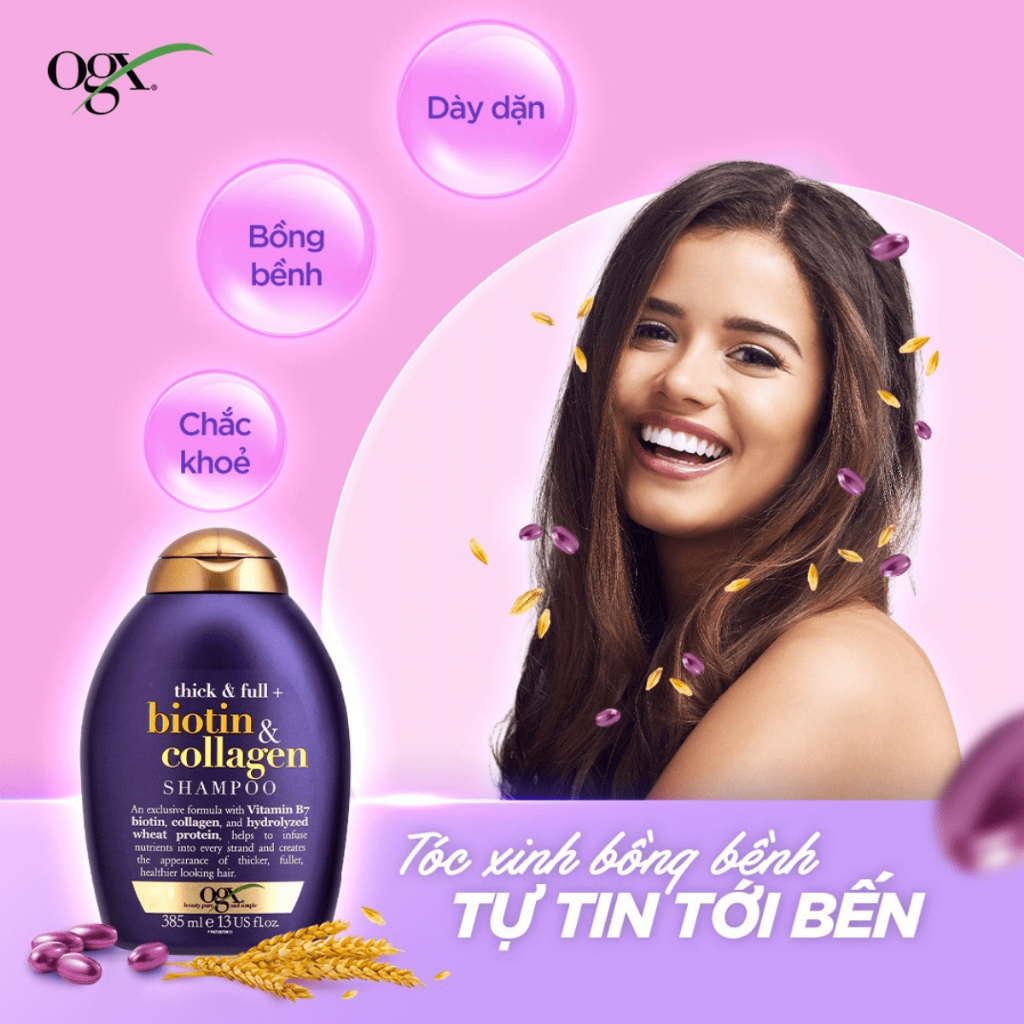 Dầu Gội Xả Biotin/Cherry/Argan/Keratin OGX Giúp Nuôi Dưỡng và Kích Thích Mọc Tóc 385ml