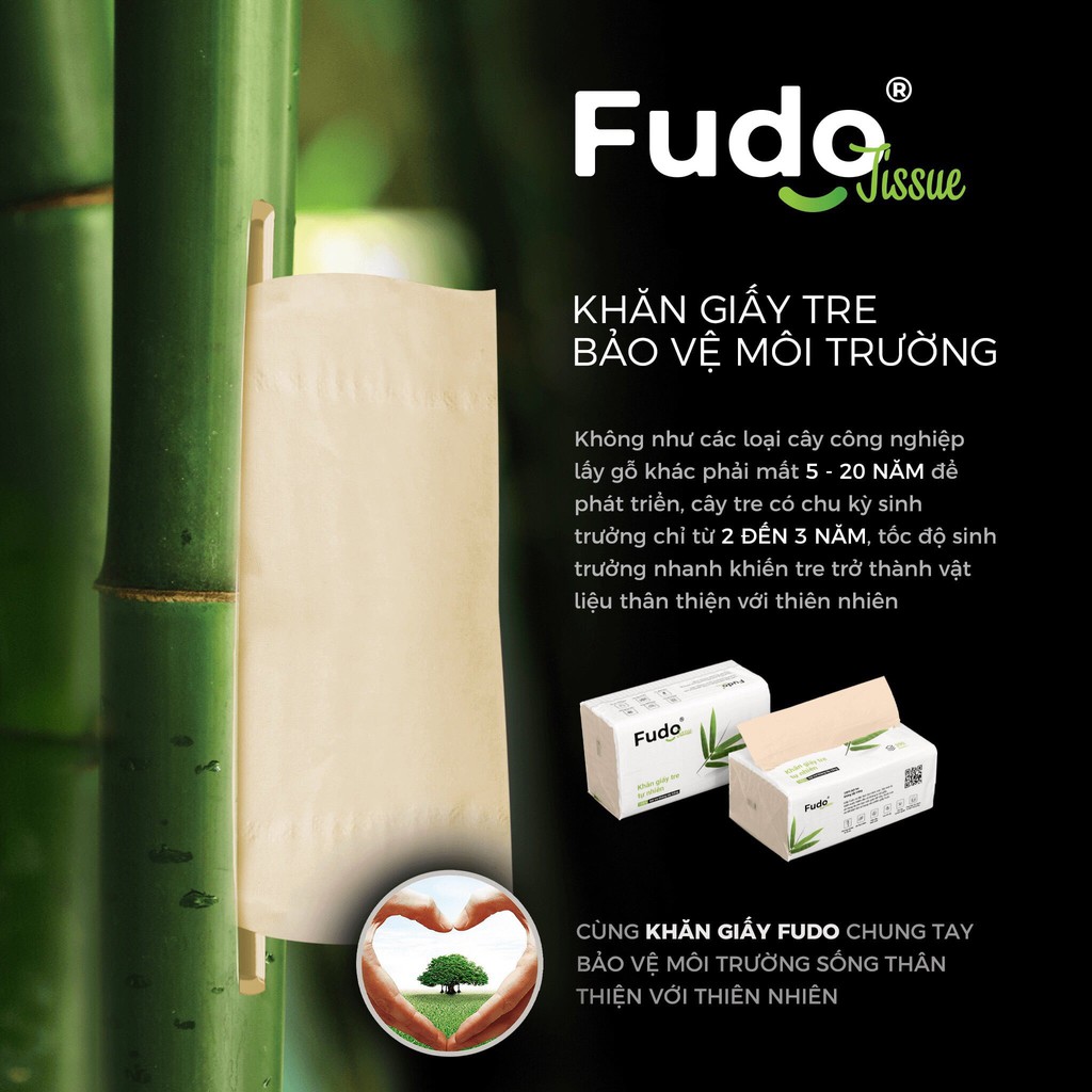 COMBO 4 gói Khăn giấy tre tự nhiên Fudo - Giấy rút 3 lớp