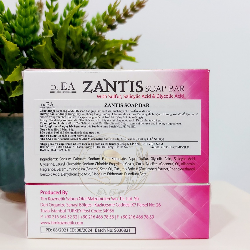 Xà phòng Dr.EA Zantis Soap Bar giúp làm sạch da, giảm dầu nhờn, giảm và ngăn ngừa mụn 80g