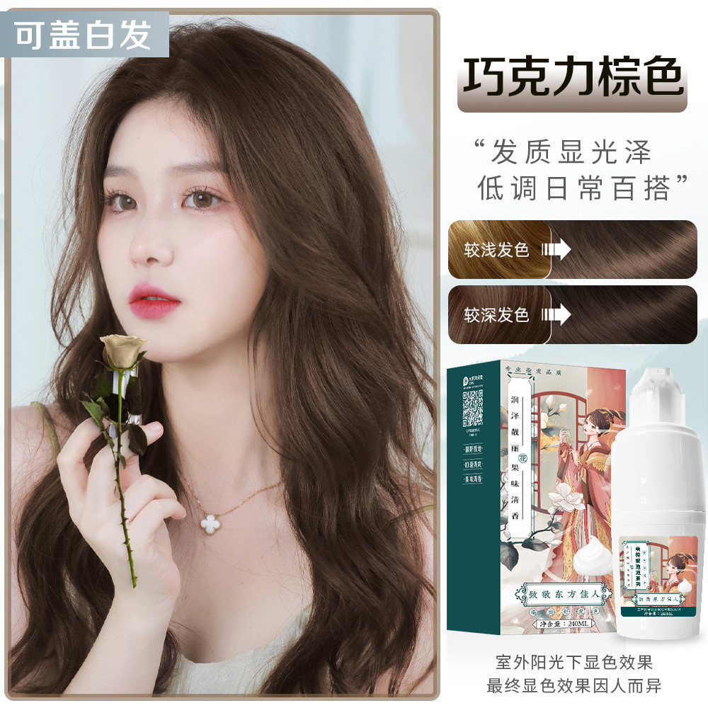 Men Mengtney Hair Dye Cream Bubble Hair Dye Boys Girls Special Cover White Hair Plant Black Tea Color Hair Dye No Rinse (Bao gồm bộ dụng cụ)