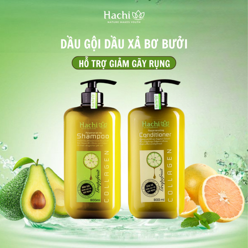 Dầu Gội, Xả thiên nhiên chiết xuất bơ bưởi dành cho tóc gãy rụng Hachi Regenerating