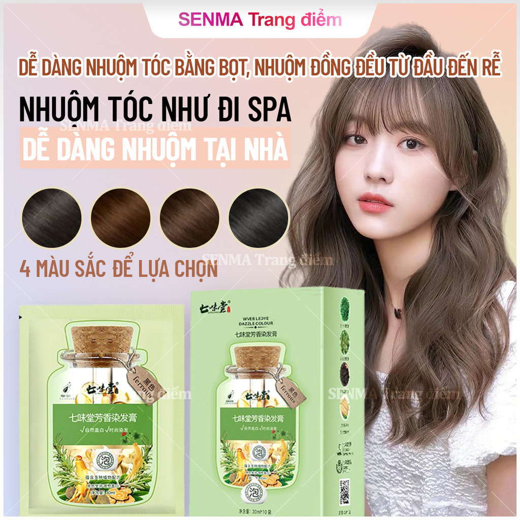 Dầu Gội Nhuộm Tóc Thảo Dược Phủ Bạc- Lên Màu Đều Tự Nhiên Đen/Nâu (10 Gói 30ml)- Dưỡng Tóc Óng Mượt