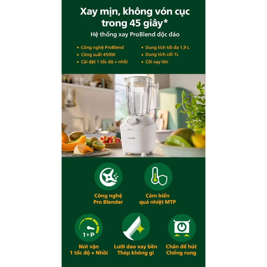 Máy xay sinh tố đa năng Philips HR2041/10 - Công suất 450W - 2 cối