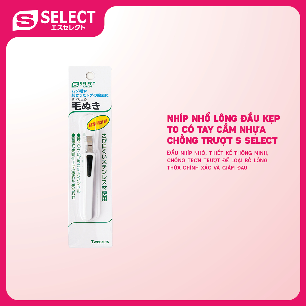 Nhíp Nhổ Lông Đầu Kẹp To Có Tay Cầm Nhựa Chống Trượt S Select Nhật Bản (1 Chiếc/Gói)