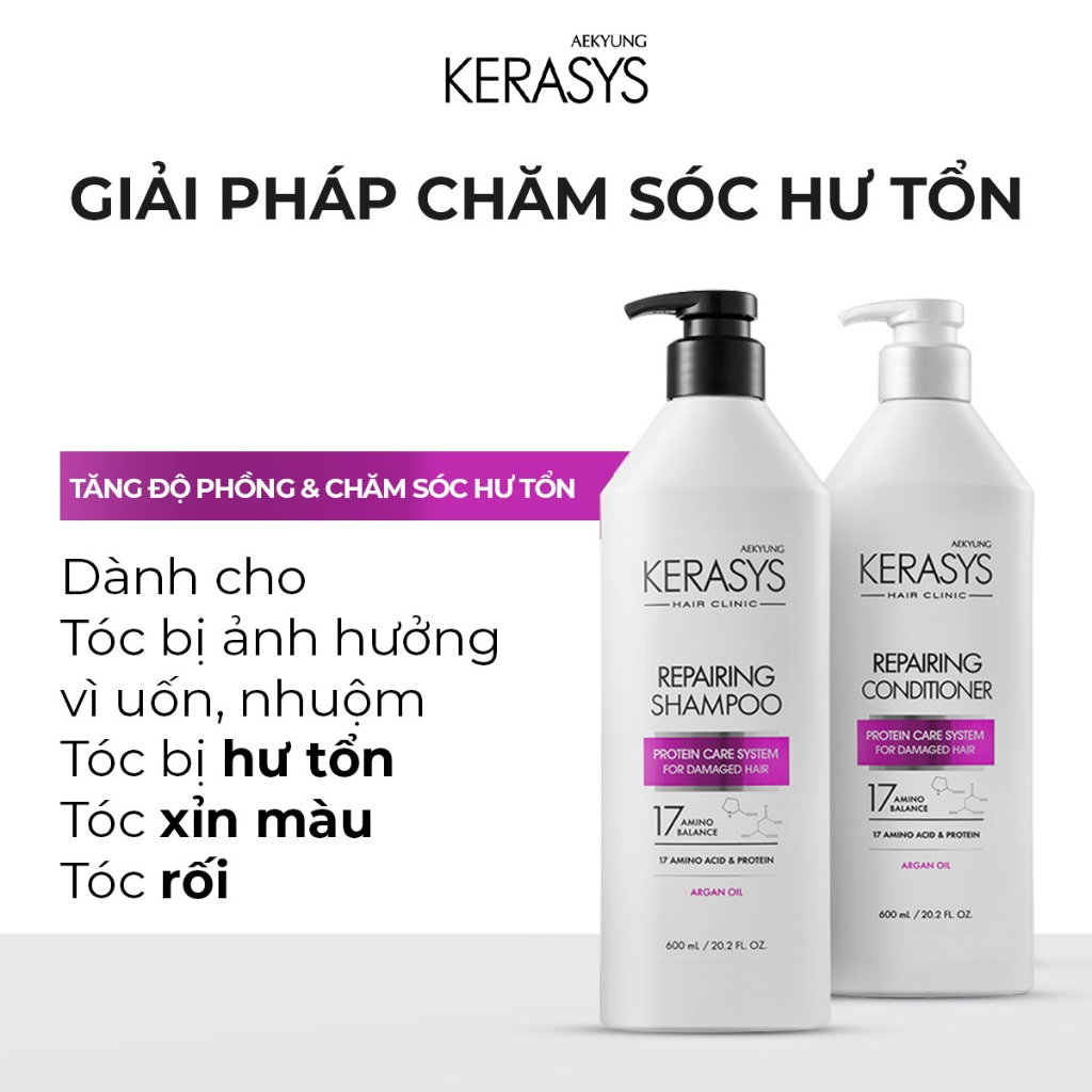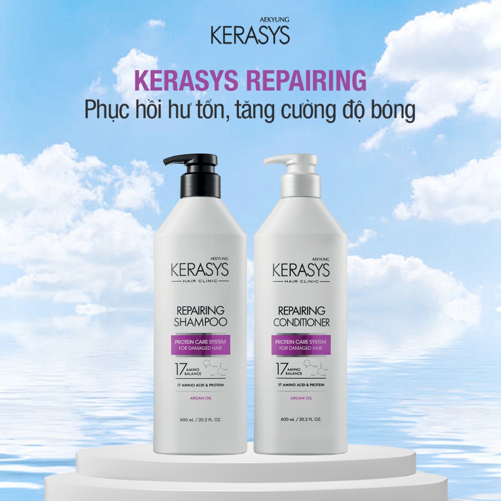 Cặp dầu gội xả Hàn Quốc phục hồi hư tổn, tăng cường độ bóng Kerasys Clinic Repairing 600mlx2
