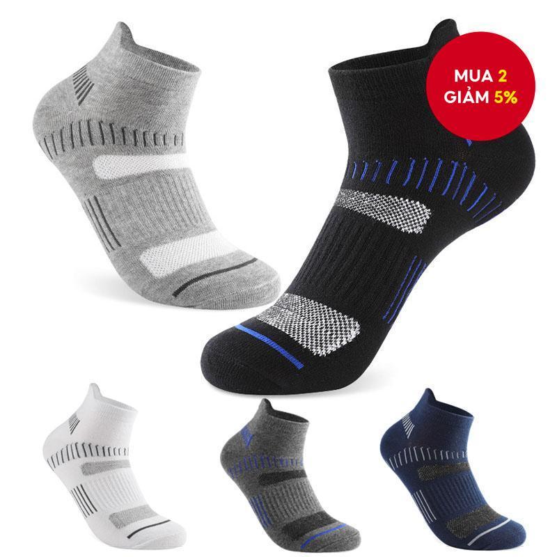 Tất thể thao nam thấm mồ hôi | 5 / 10 Đôi Tất Chạy Bộ Thấp Thoáng Khí | Thiết kế khối màu cho phòng tập thể dục (Đen / Trắng / Xám)