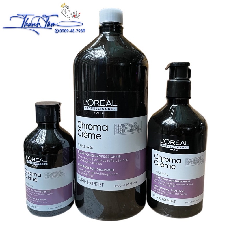 Gội tím khử vàng cực mạnh L'oreal Professionnel Chroma Crème Purple Dyes Shampoo 1500ml ( New )