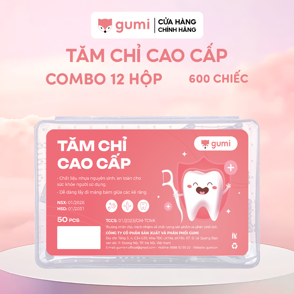 Combo 12 Hộp 600 Chiếc tăm chỉ Cao Cấp Gumi xỉa răng, Vệ sinh làm sạch răng