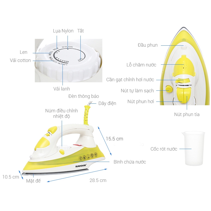 Bàn là hơi nước Sunhouse SHD2067, Bàn ủi hơi nước Sunhouse phun hơi và phun nước tiện dụng, công suất 1800W