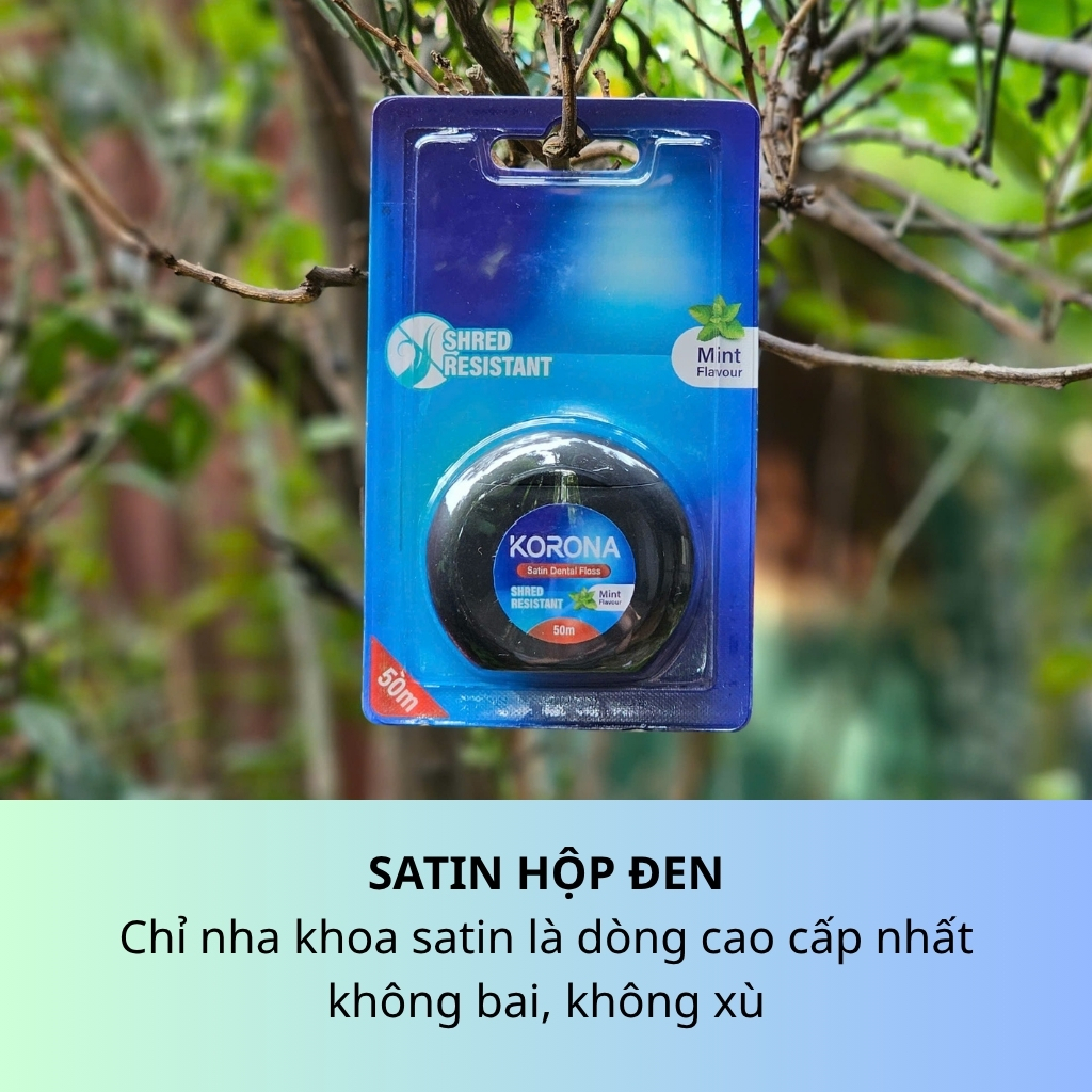 Chỉ nha khoa KORONA SATIN Dental Floss 50m, vệ sinh răng miệng, răng niềng, giảm cao răng, tụt lợi