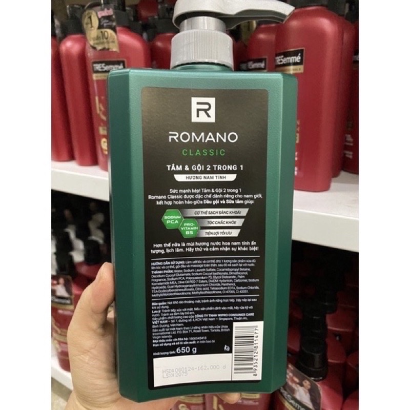 Tắm Gội 2in1 Romano 650g (Xanh lá)