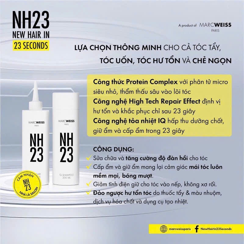 Bộ Dầu gội và Nước Dưỡng NH23 IQ REPAIR KIT 200ml giúp dưỡng ẩm và phục hồi độ bóng mượt cho mái tóc