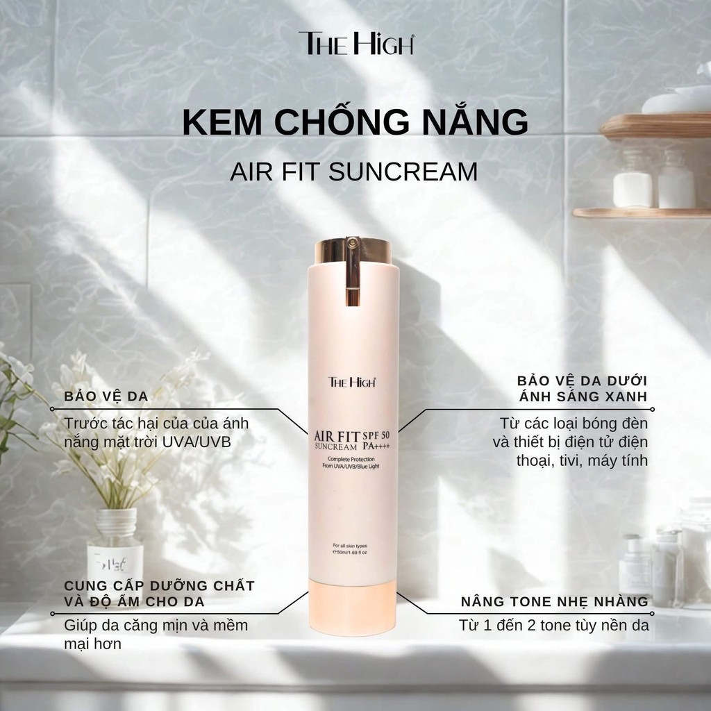 Kem Chống Nắng The High Airfit Sun Cream 50ml - Nâng Tone kiềm dầu da tốt