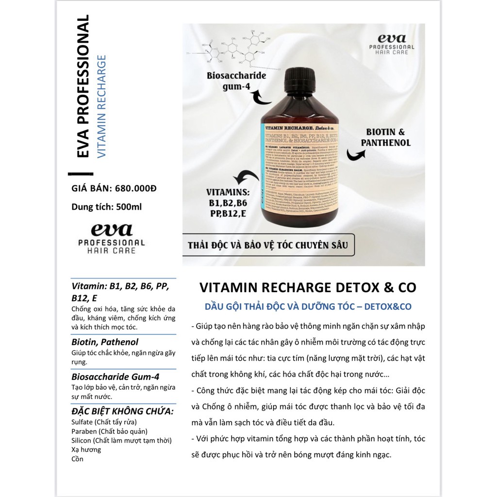 Dầu gội thải độc và dưỡng tóc Eva Vitamin Recharge Detox & Co 500ml chính hãng