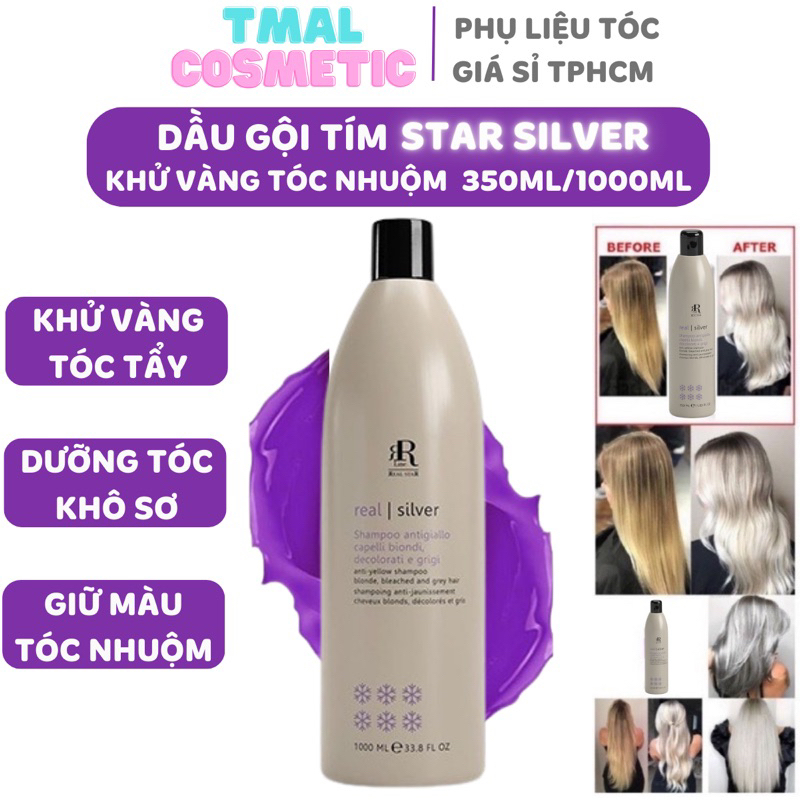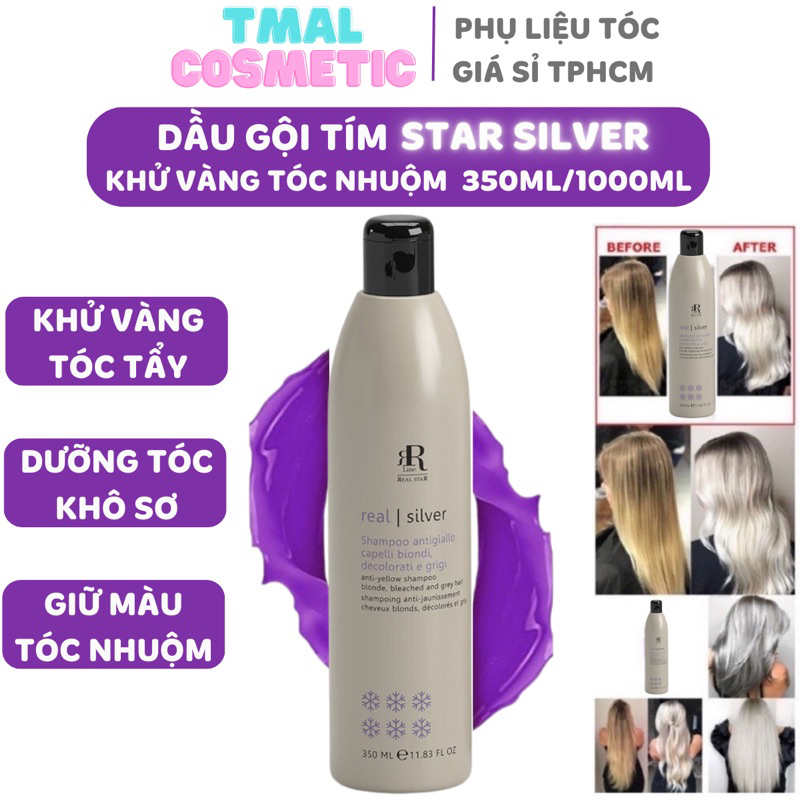Dầu gội tím Real Star Silver 1000ML ITALY - KHỬ ÁNH VÀNG giữ màu cho tóc nhuộm, tóc tẩy bền màu