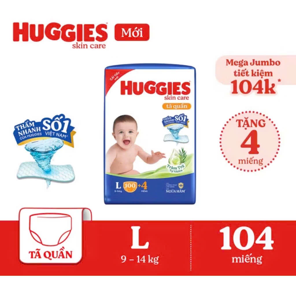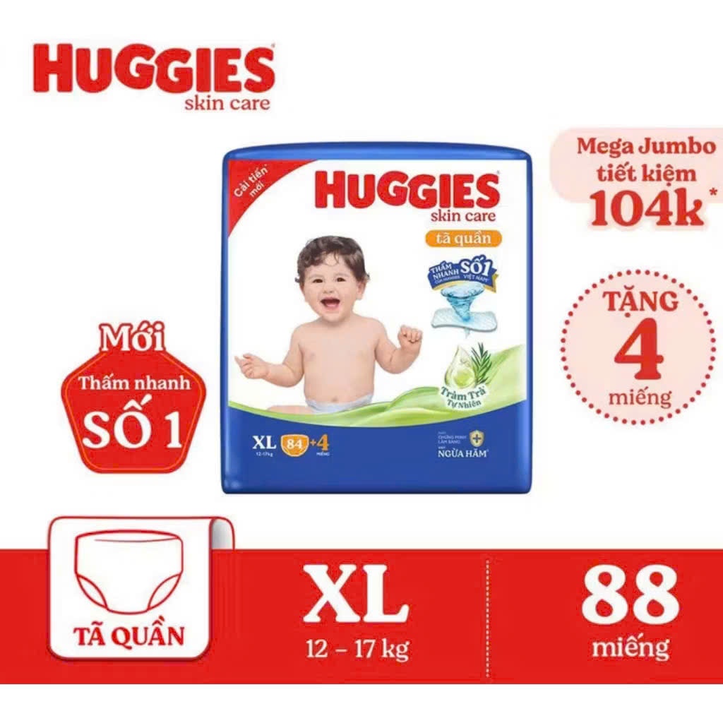 Tã/Bỉm quần Huggies Tràm Trà Skin Care Mega Jumbo M102+4/L100+4/XL84+4/XXL76+4 miếng Bĩm Nhà Cherry
