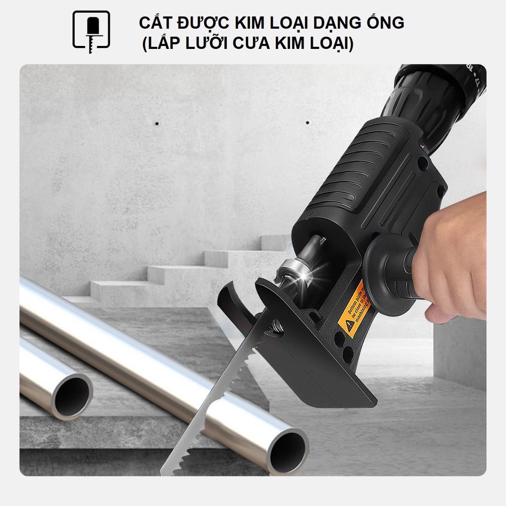 Bộ Chuyển Đổi Máy Khoan Thành Máy Cưa Điện Cầm Tay Kèm 3 Lưỡi Cưa Gỗ Kim Loại Nhựa ( Lắp Được Khoan Pin Và Khoan Điện)
