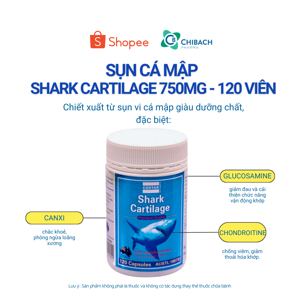 Sụn Cá Mập Costar SHARK CARTILAGE 750MG, Bổ Khớp - Hộp 120 Viên - Nhập Khẩu Chính Hãng Úc