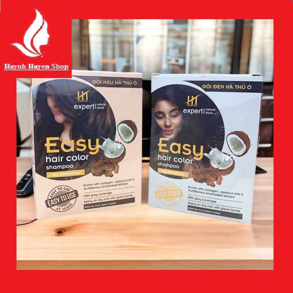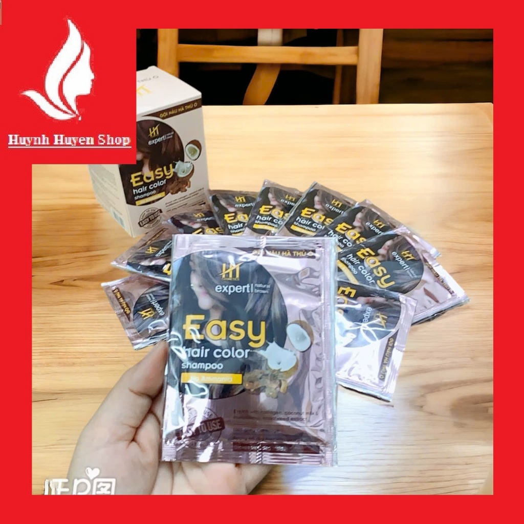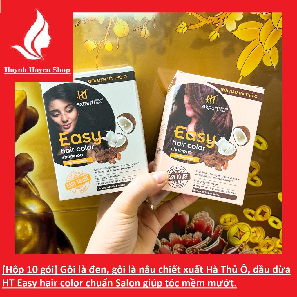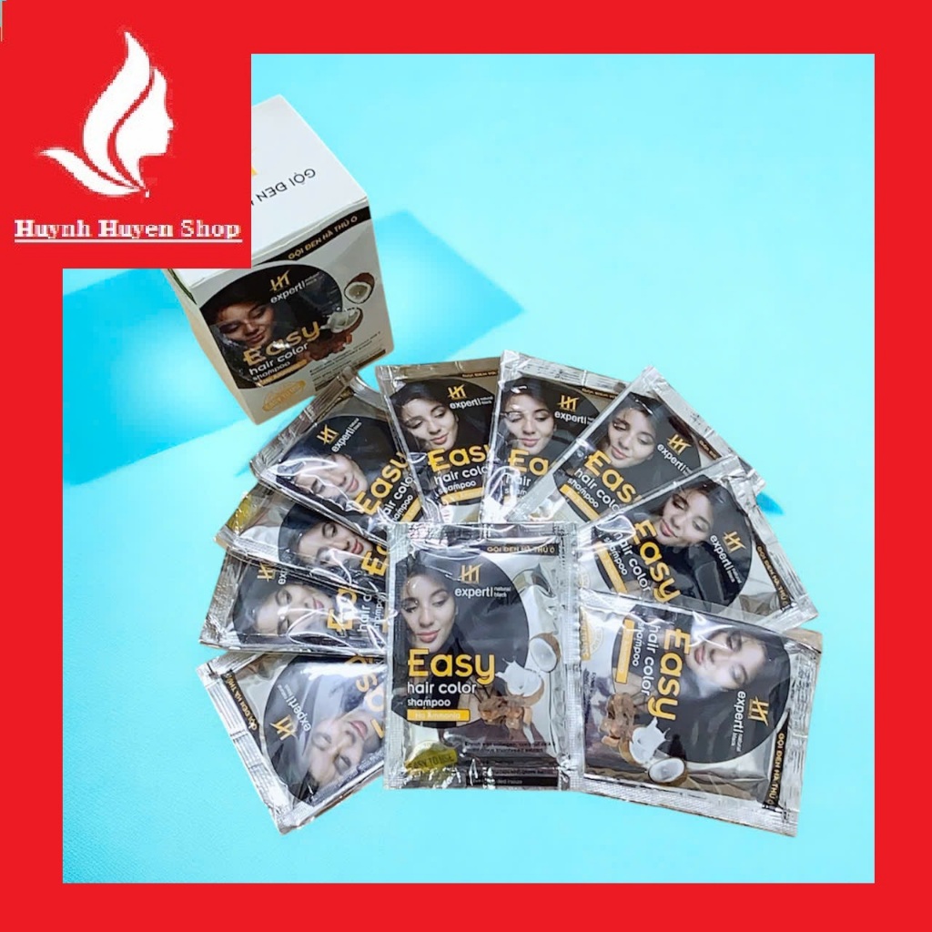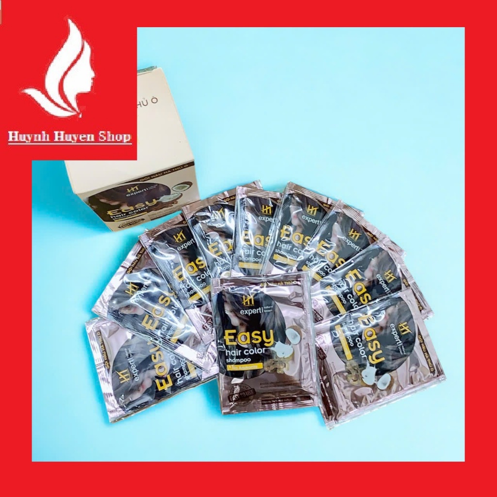 [hộp 10 gói] Gội là đen, gội là nâu Easy hair color shampoo (cao cấp) chiết xuất hà thủ ô và dầu dừa, thơm, mướt tóc
