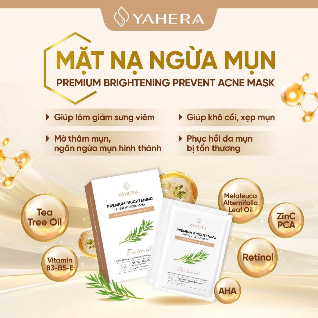 Hộp 10 mặt nạ mụn thạch nước dừa tươi cao cấp YAHERA Premium Moisturizing Acne Mask Sheet giảm mụn, cấp ẩm,làm dịu da