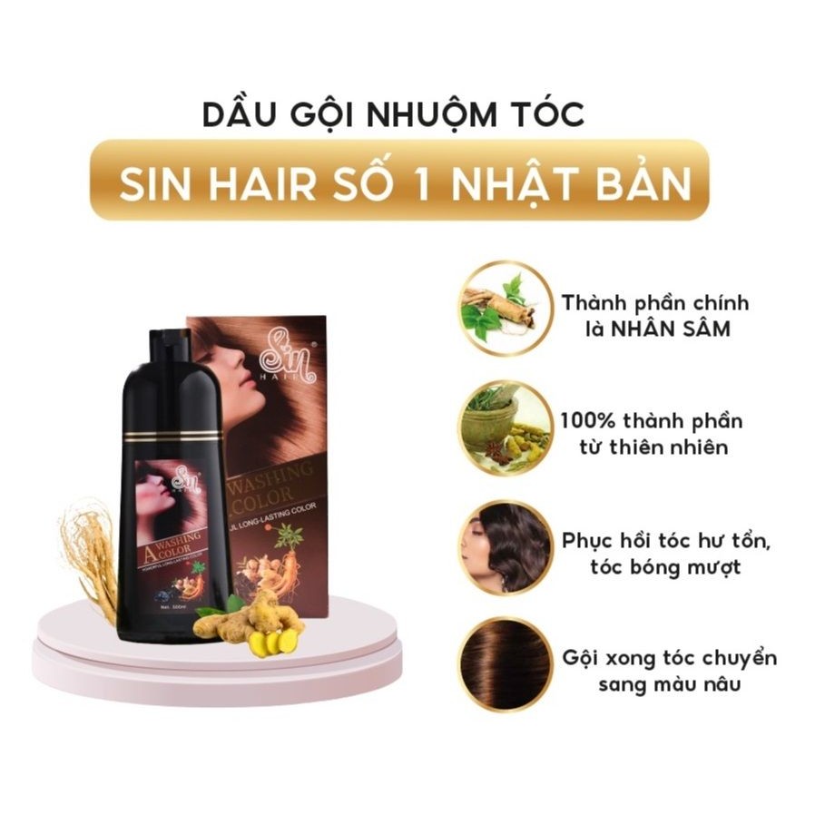 Dầu Gội Phủ Bạc Nhân Sâm Sin Hair Màu Đen và Nâu 500ml Chính Hãng Giá Sỉ