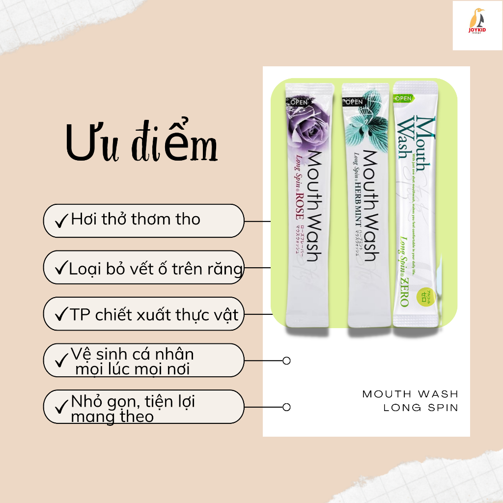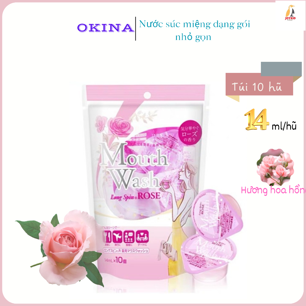 Nước súc miệng dạng gói Okina Long Spin Nhật Bản hương hoa hồng/bạc hà/thảo dược/đào, lài/quả mọng 10ml/gói