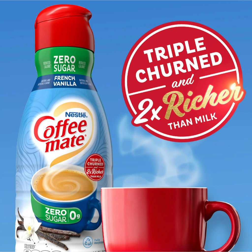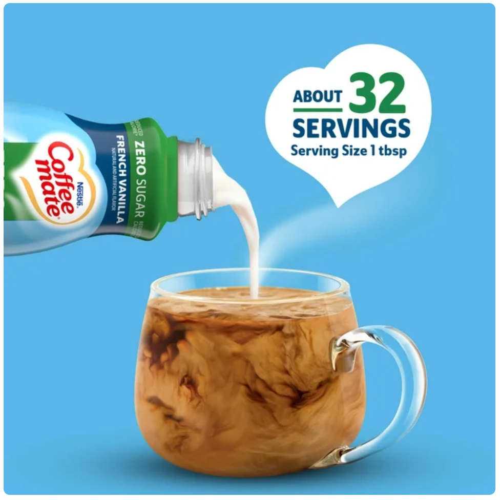 KEM SỮA KHÔNG ĐƯỜNG - ÍT CALO Nestle Coffee Mate French Vanilla Liquid Coffee Creamer, Zero Sugar, Reduced Calorie