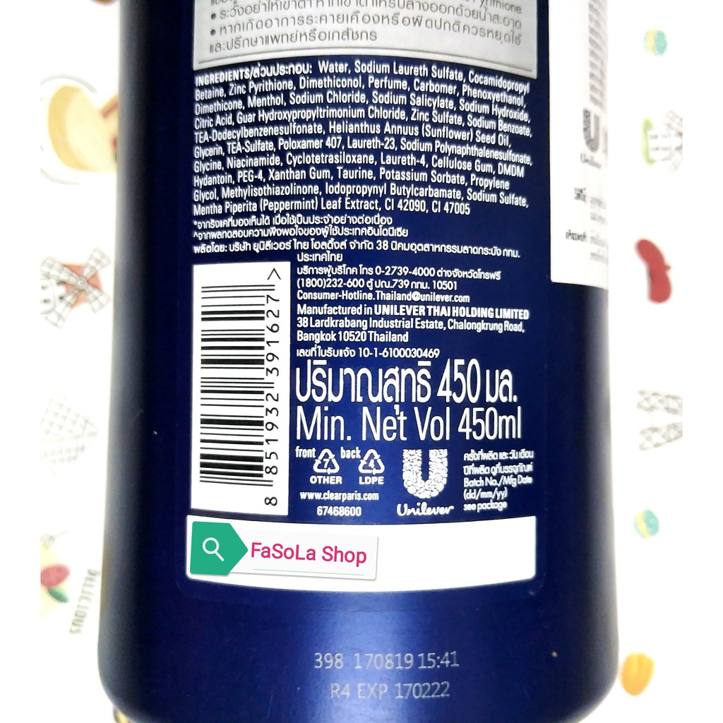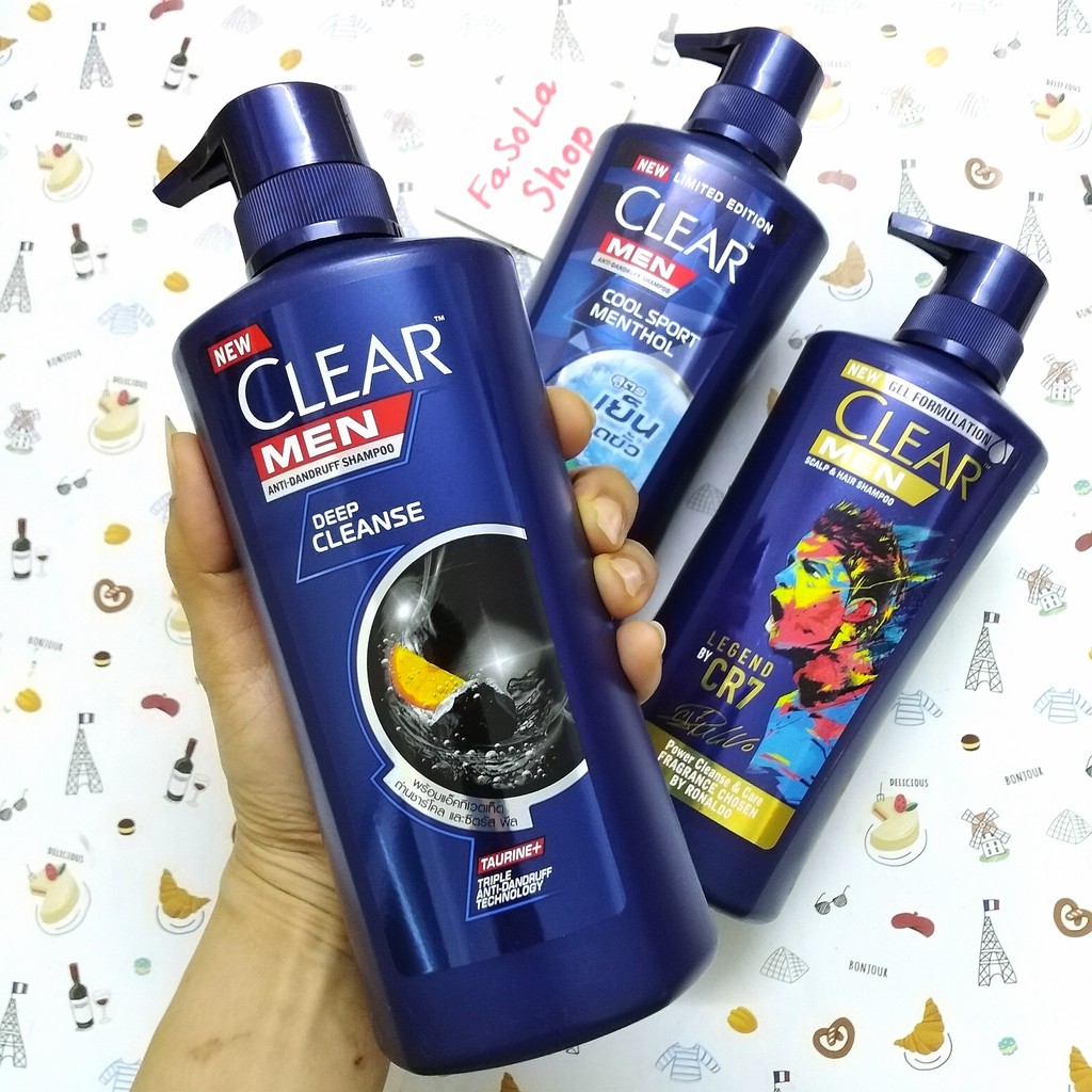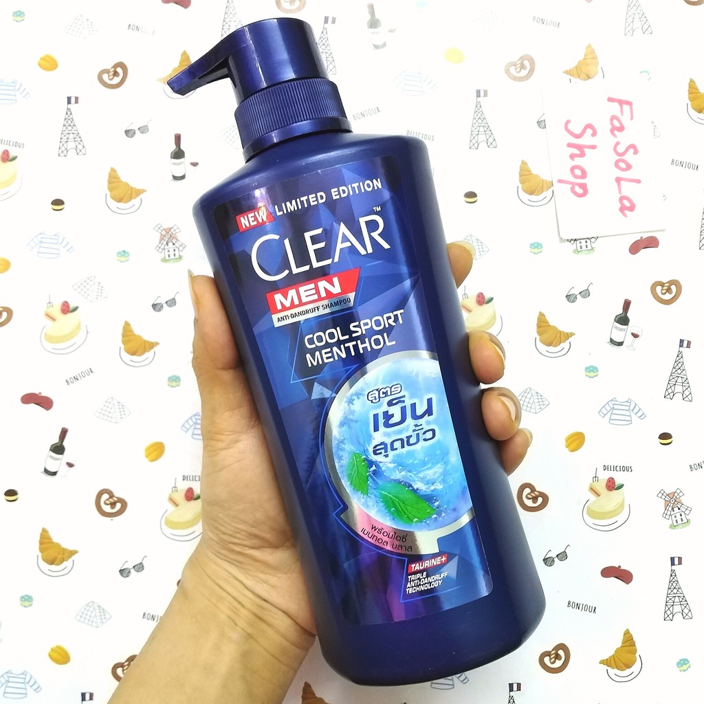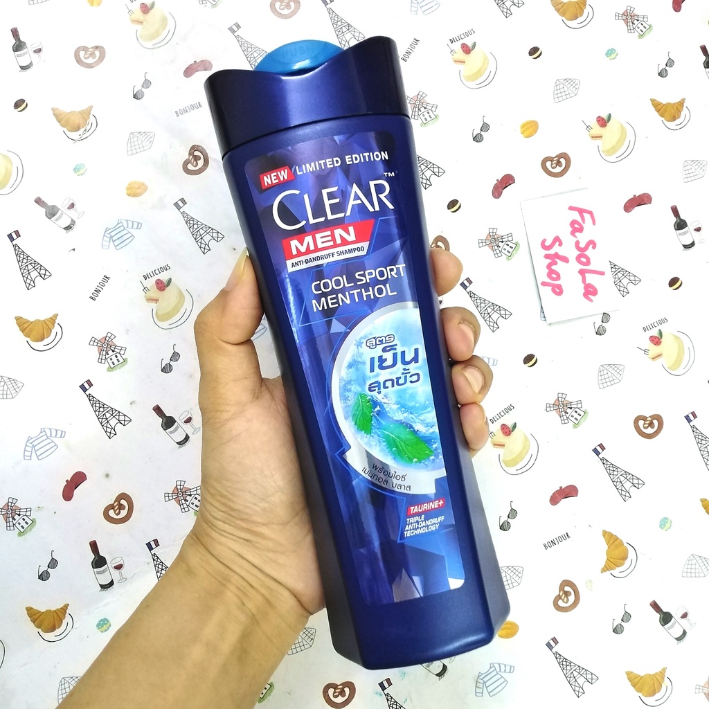 Dầu gội CLEAR MEN 360ml Thái Lan bạc hà mát lạnh Cool sport menthol than hoạt tính cleanse shampoo