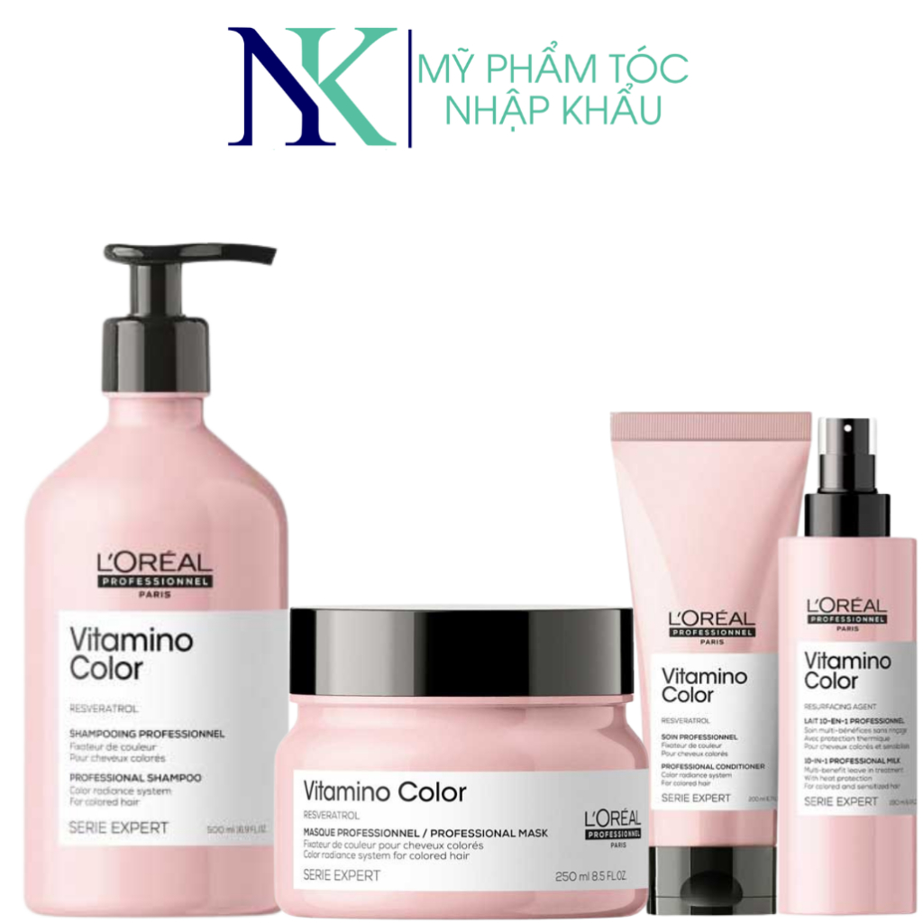 Bộ dầu gội, dầu xả và hấp dầu L'oreal Vitamino Color Giữ Màu Tóc Nhuộm