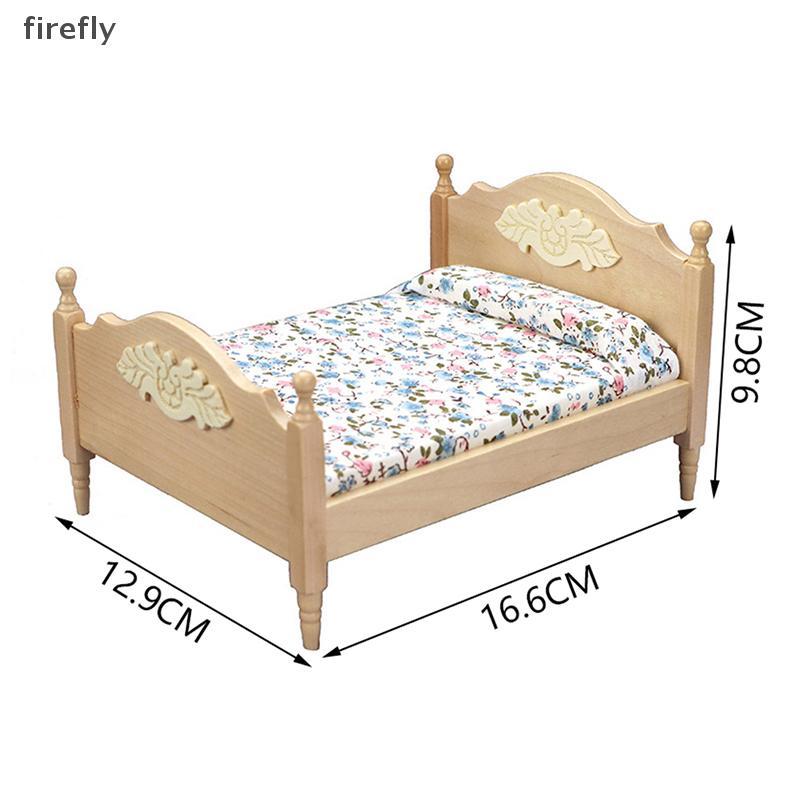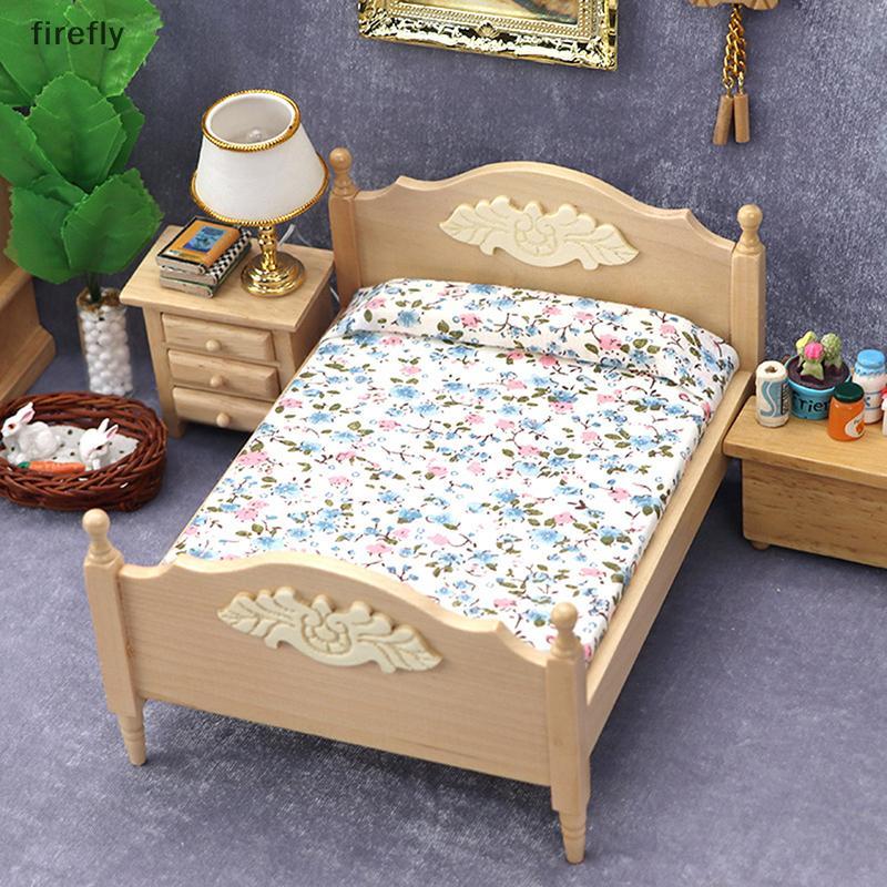 [Firefly] 1Pc 1: 12 Nhà búp bê Phòng ngủ thu nhỏ Giường đôi Mô phỏng Châu Âu Đồ chơi trang trí cảnh sống [VN]