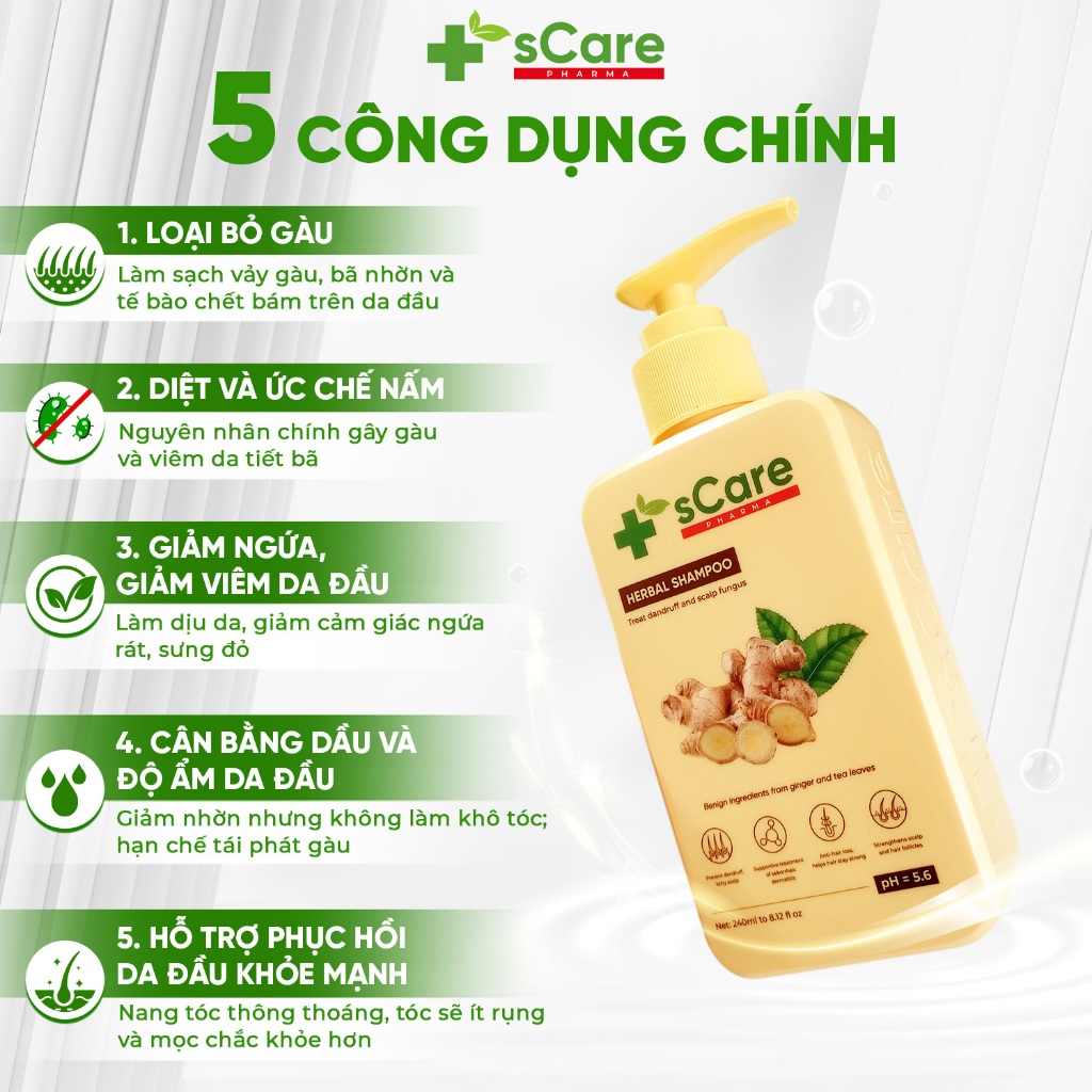 Dầu Gội Sạch Gàu sCare, Giảm Gàu Bong Tróc, Giảm Cảm Giác Ngứa, Nấm Da Đầu, Chiết Xuất Từ Dược Liệu