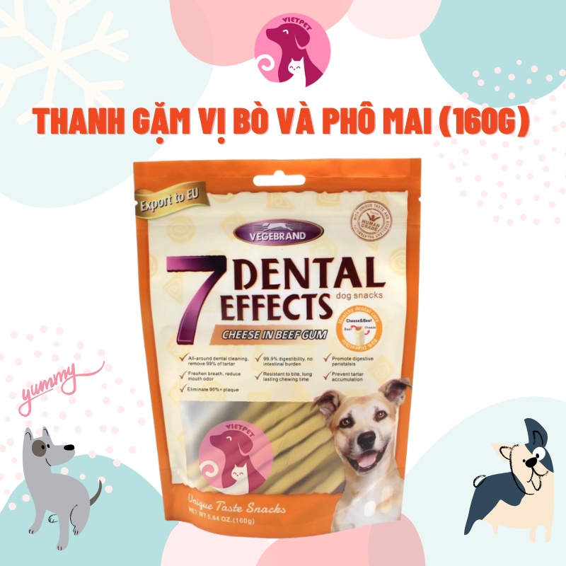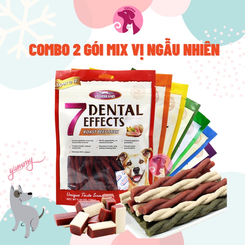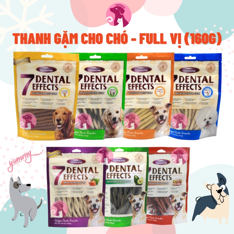 [160g] Xương gặm sạch răng/ Thanh nhai cho chó 7 Dental Effects (Full vị: Bò, Bơ, Sữa, Cá hồi & Rau)