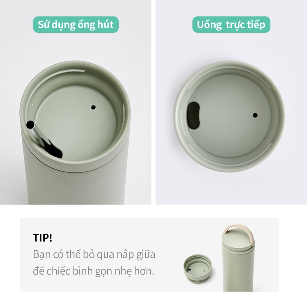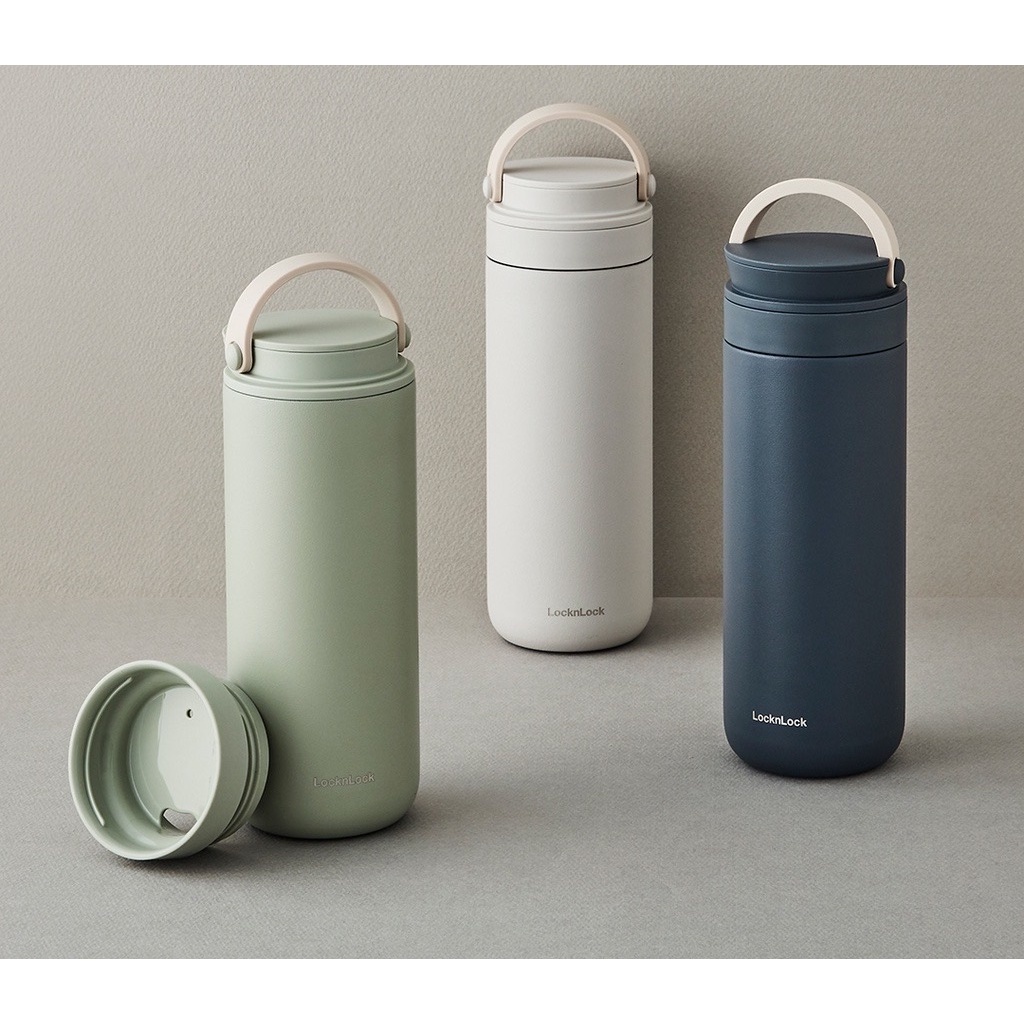 Bình giữ nhiệt LocknLock 475ml Metro Two Way LHC4274 màu trắng, thép không gỉ, có quai xách - K-MALL