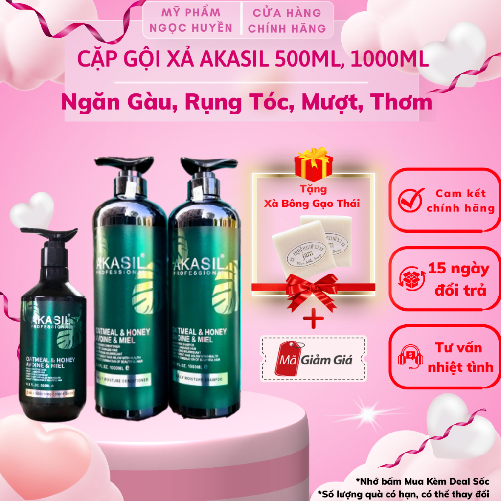 Dầu Gội Xả AKASIL 500ml, 1000ml Siêu Mượt Hương Nước Hoa Ngăn Gàu Ngăn Rụng Tóc, Giảm Nhờn HÀNG CHÍNH HÃNG