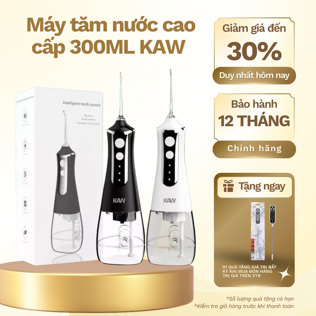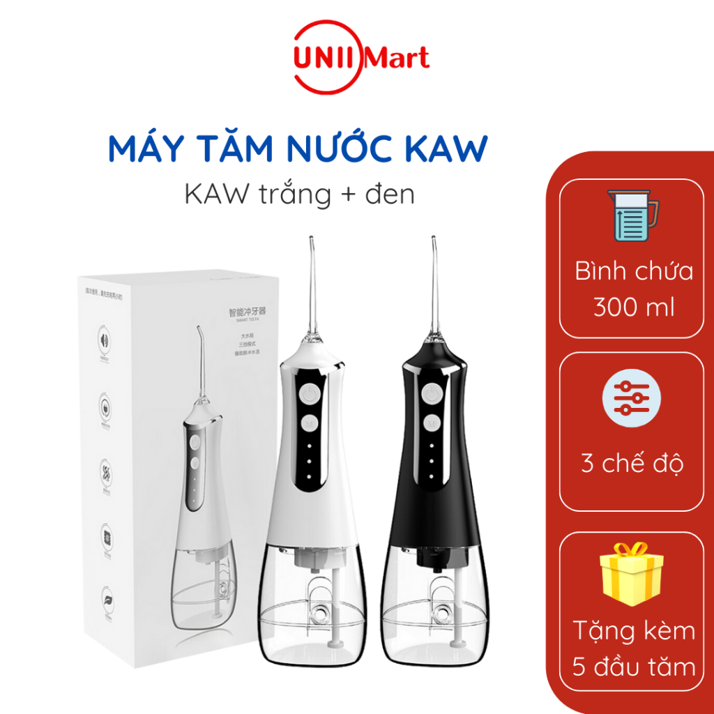 Máy tăm nước KAW bình chứa 300ml pin 7 ngày, điều chỉnh 3 tốc độ - Hàng chính hãng bảo hành 1 đổi 1