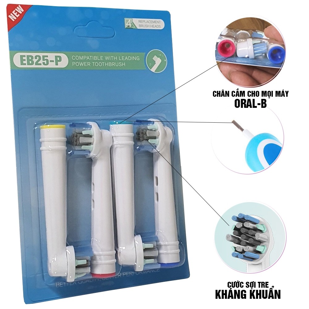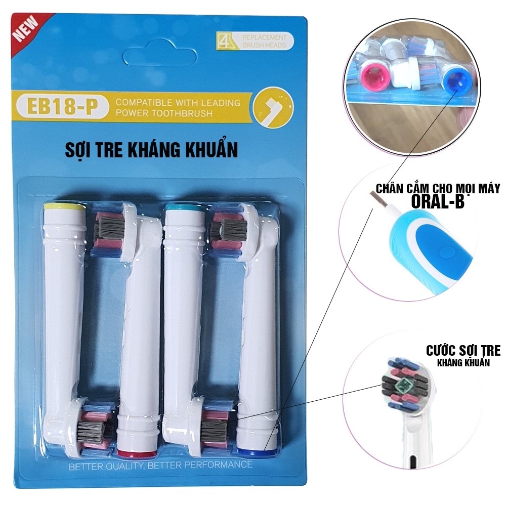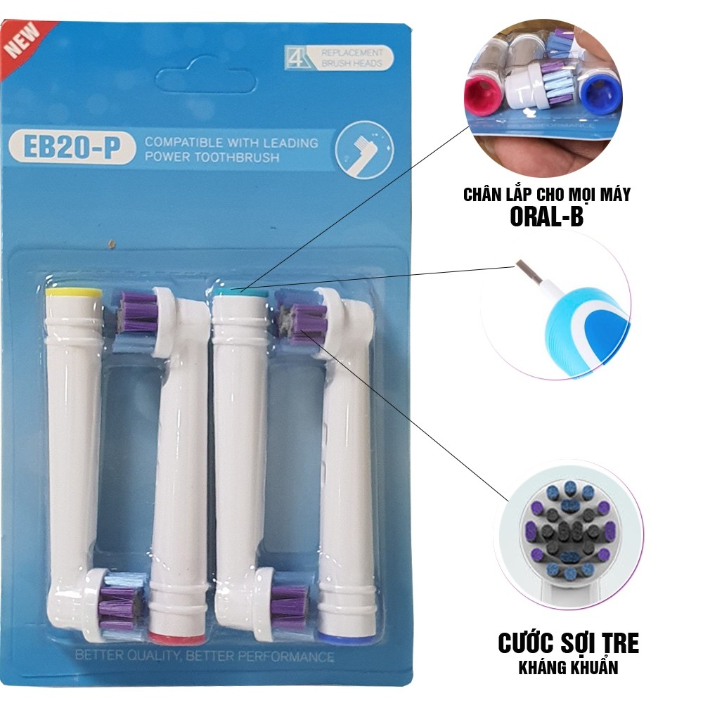 Cho máy Oral B, Set bộ 4 đầu bàn chải đánh răng điện Pro 3d White, Floss, Sợi tre Minh House
