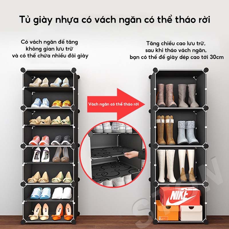 STON Tủ giày nhựa giày dép đa năng Giá lưu trữ nhiều lớp chống bụi giá Thép không gỉ để giày