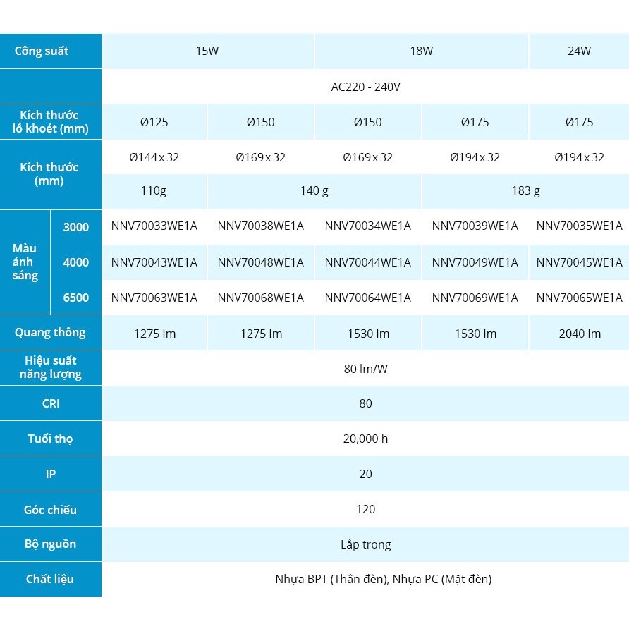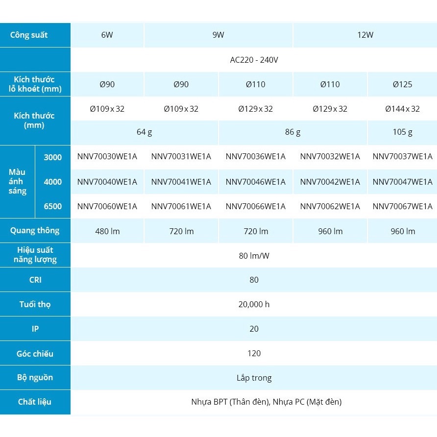 Đèn LED âm trần Downlight Panasonic DN 2G Công suất 6W, 9W, 12W, Bảo hành 2 năm - lỗi 1 đổi 1