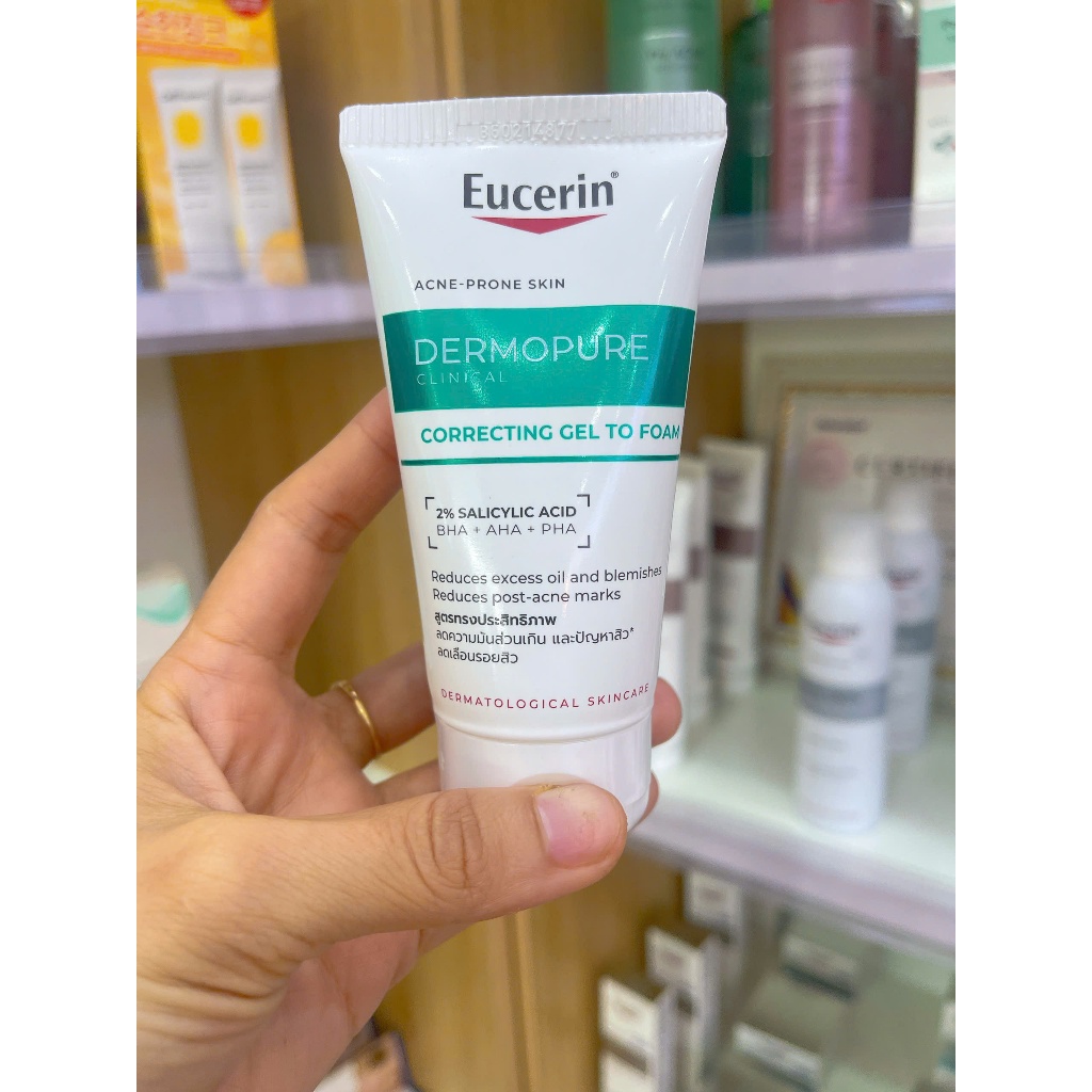 (Mẫu mới ) Sữa rửa mặt cho da mụn dạng gel Eucerin 3X Treatment Gel To Foam Cleanser 150ml tặng khăn ướt