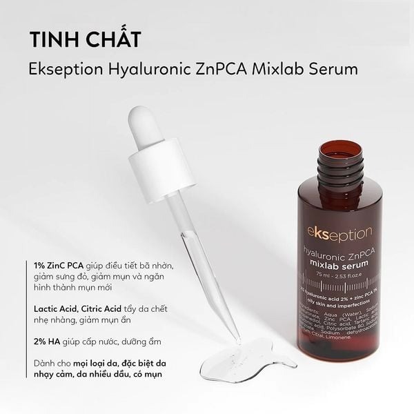 Tinh Chất Kẽm Ekseption Hyaluronic ZnPCA Mixlab Serum Giảm Mụn, Kiềm Dầu, Dưỡng Ẩm 75ml Duduhouse