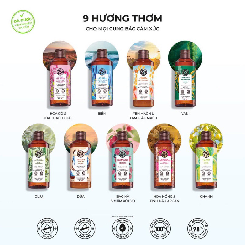 [CÓ HOẢ TỐC] Sữa Tắm Yves Rocher Nuôi Dưỡng Da Mềm Mịn Với Nhiều Mùi Hương Tự Nhiên 400ml