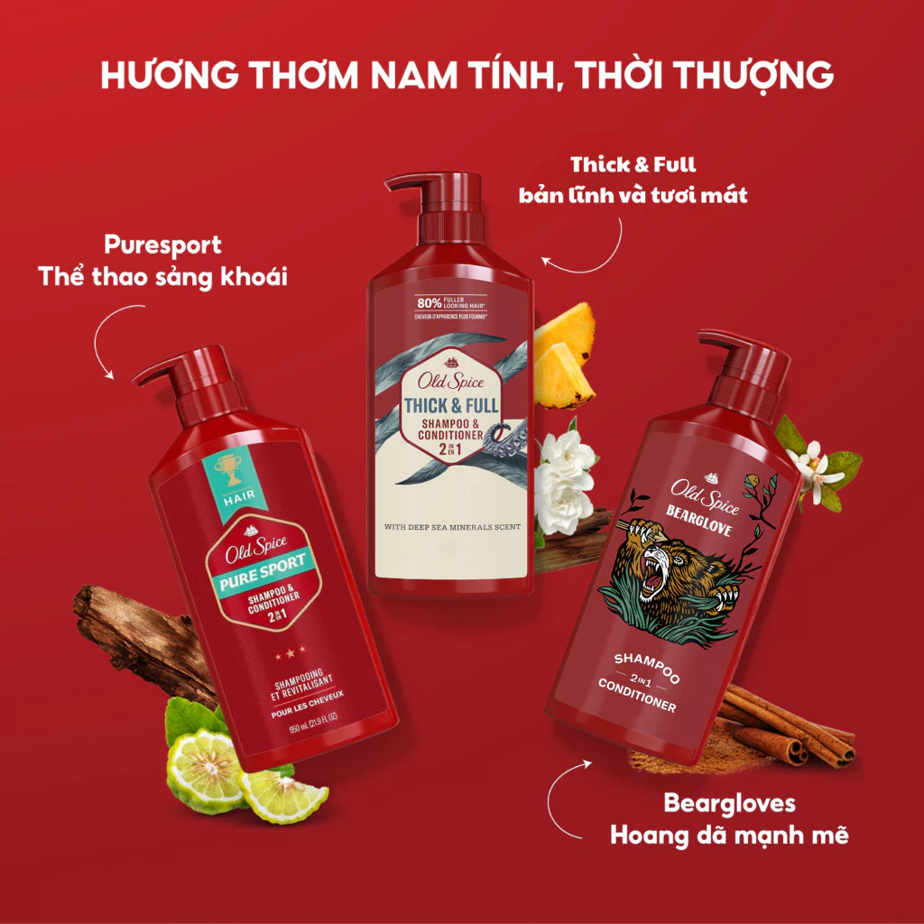 Dầu Gội Xả 2in1 OLD SPICE Hương Nước Hoa Cho Nam 650ML - Nhập Khẩu Mỹ