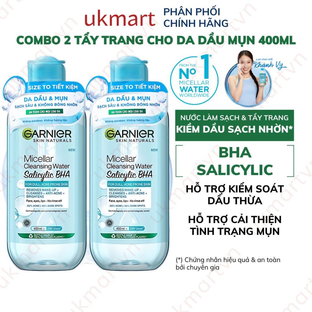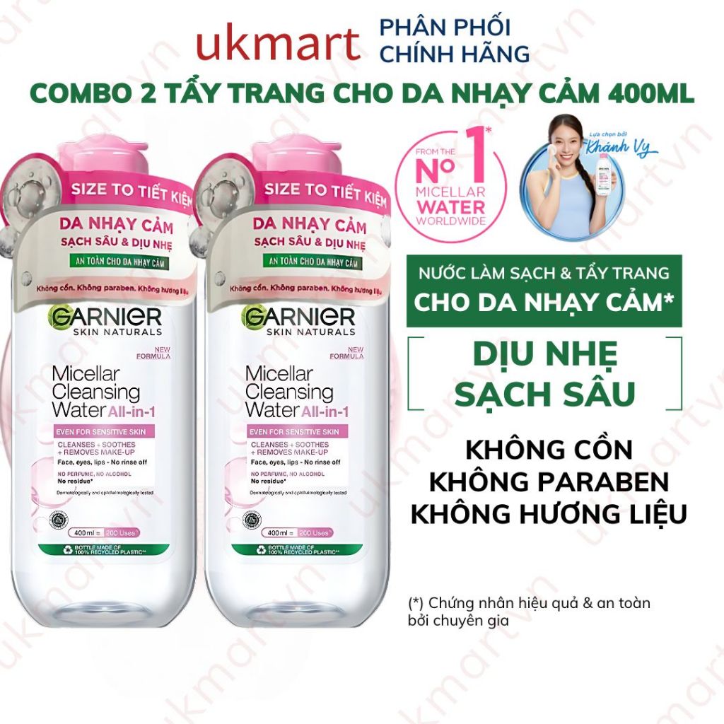 Bộ 2 Nước Làm Sạch Và Tẩy Trang Garnier Micellar Cleansing Water Chính Hãng 400ml x 2